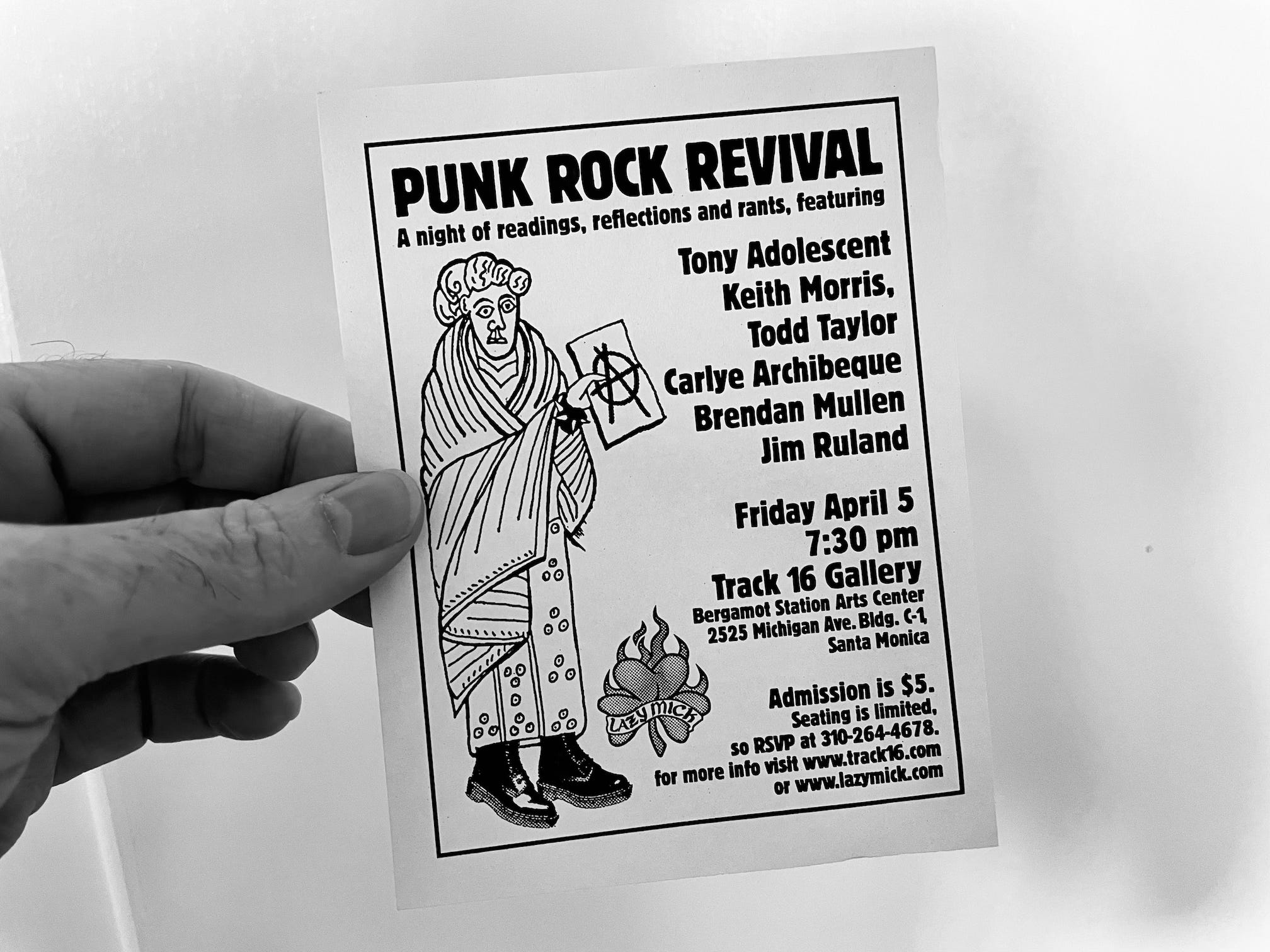 In April of 2002, twenty-five years after the Damned crash landed in LA, I hosted a show at Track 16 in Santa Monica called Punk Rock Revival. I had been doing some readings with the Razorcake crew at a place called Flor y Canto but we wanted to do more. Razorcake was new and I wanted to integrate the zine into the city’s scattershot literary scene. So I organized an event at the gallery that had put on the show Forming: The Early Days of LA Punk and assembled an all-star cast.